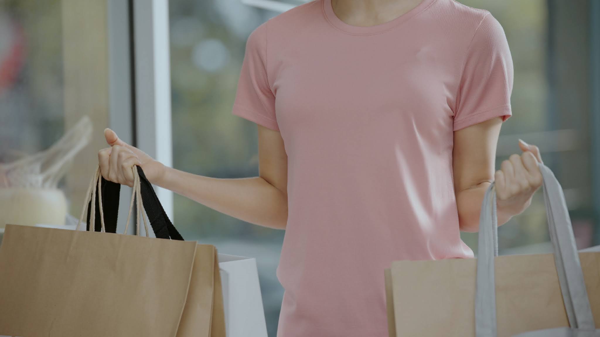โดยเริ่มจากท่าง่ายๆ แค่ถือถุงช้อปปิ้งแบบหงายมือ หนีบศอกเข้ากับลำตัว