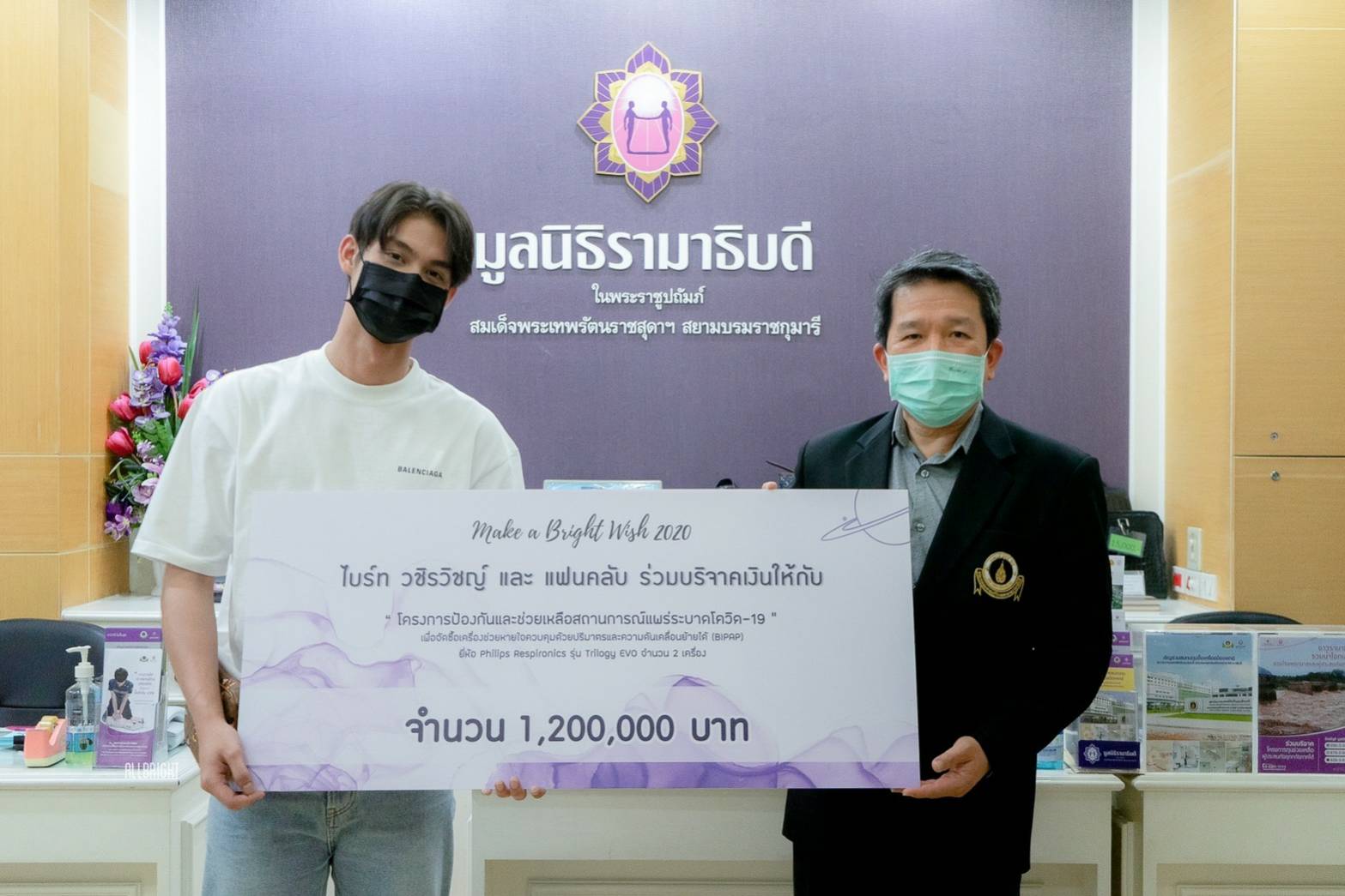 859,500 บาท โดยทางไบร์ท วชิรวิชญ์และแฟนคลับได้ร่วมทำการบริจาคตามโครงการต่างๆ