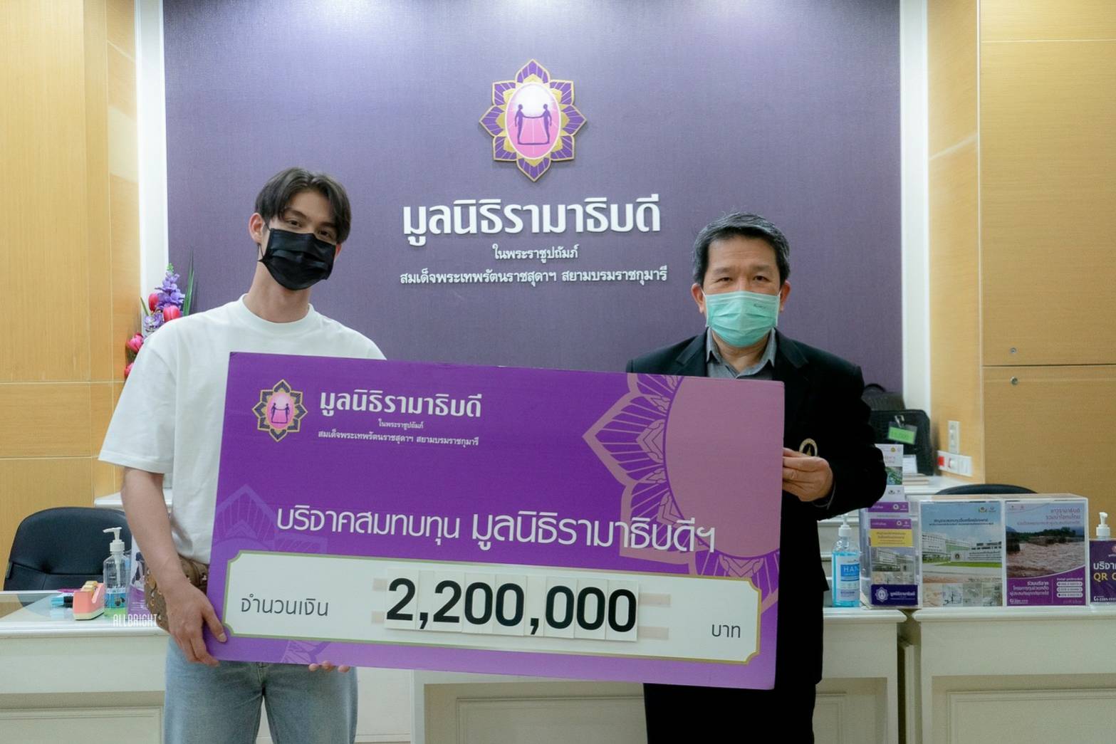 กรรมการบริหารและเหรัญญิกมูลนิธิรามาธิบดีฯ ตัวแทนรับมอบเงินบริจาค