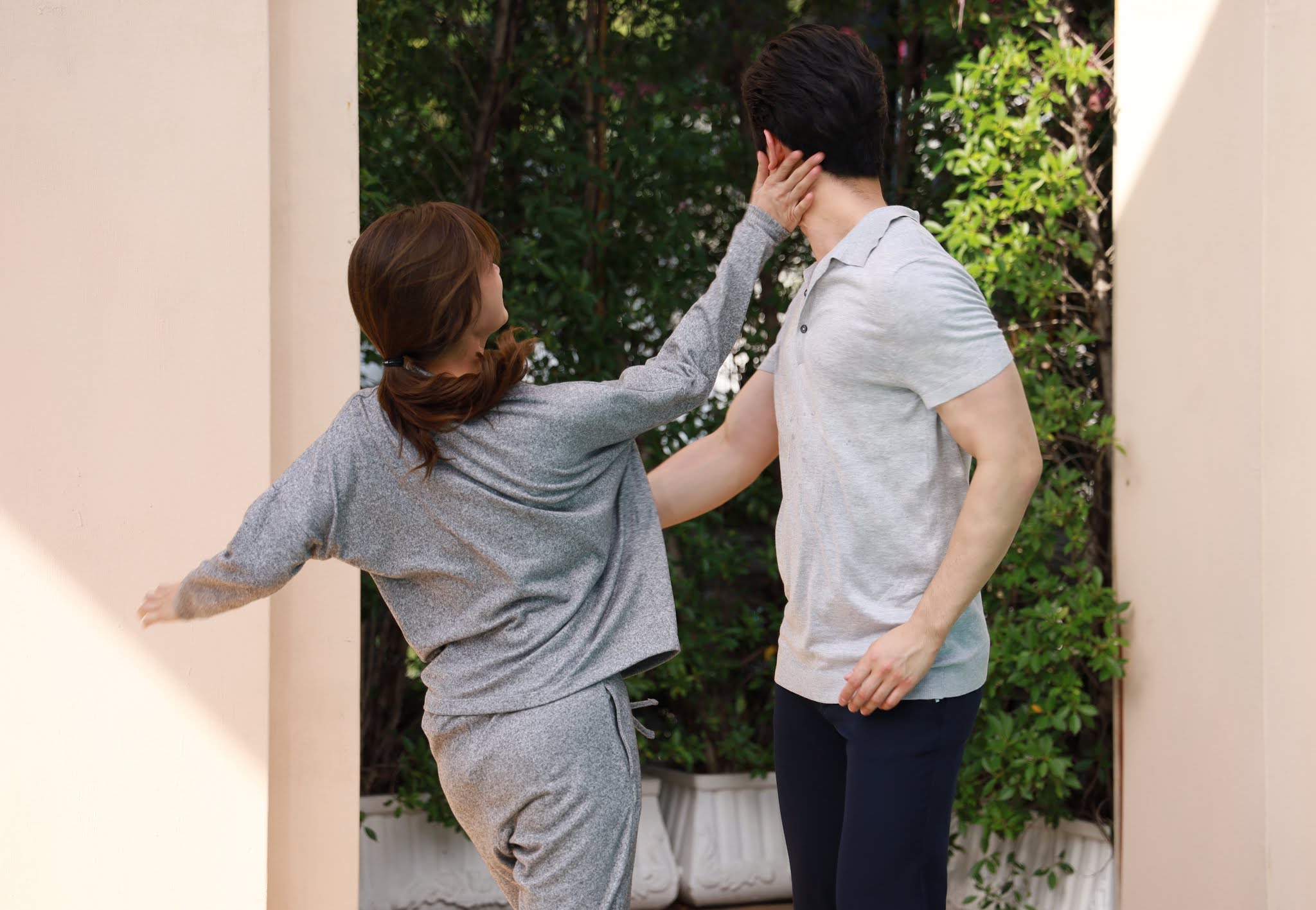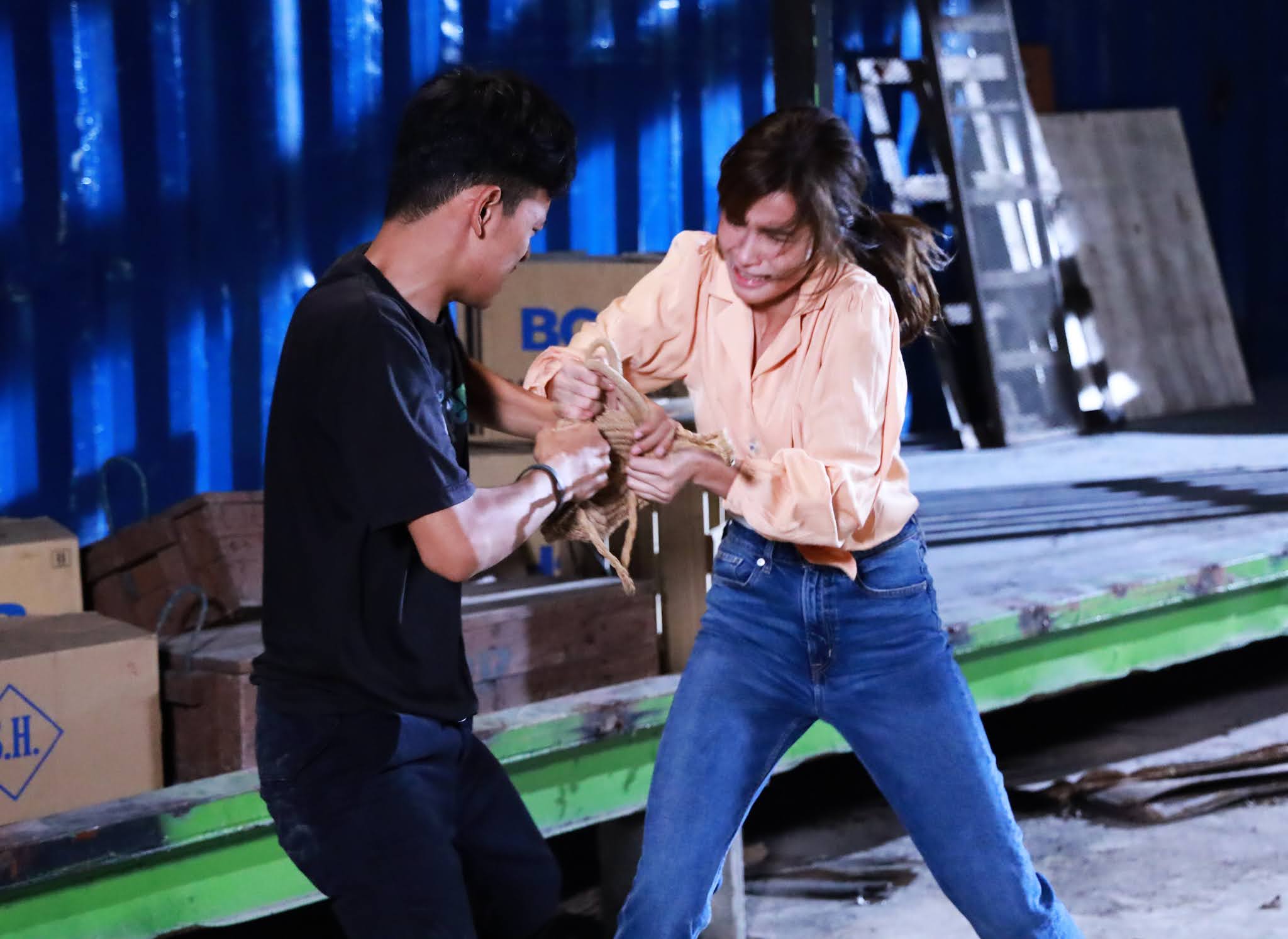 มีตบก็ต้องมีจูบไม่ทันได้คิดเยอะสนก็ล็อคตัววิวเข้ามาแล้วโถมจูบ จากที่เธอโวยวายๆ ทุกอย่างเงียบกริ๊บได้ยินแม้กระทั่งเสียงลมหายใจ ผู้กำกับปลา บอกผ่านวอ.เบาๆ “ตากล้องค่อยๆ เก็บภาพไปนะ ส่วนพี่สน-พี่วิวนุ่มๆ