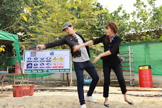 จากนั้นไผ่จี้จับตัววิวมาในเขตก่อสร้างกลางแดดร้อนๆ จู่ๆ