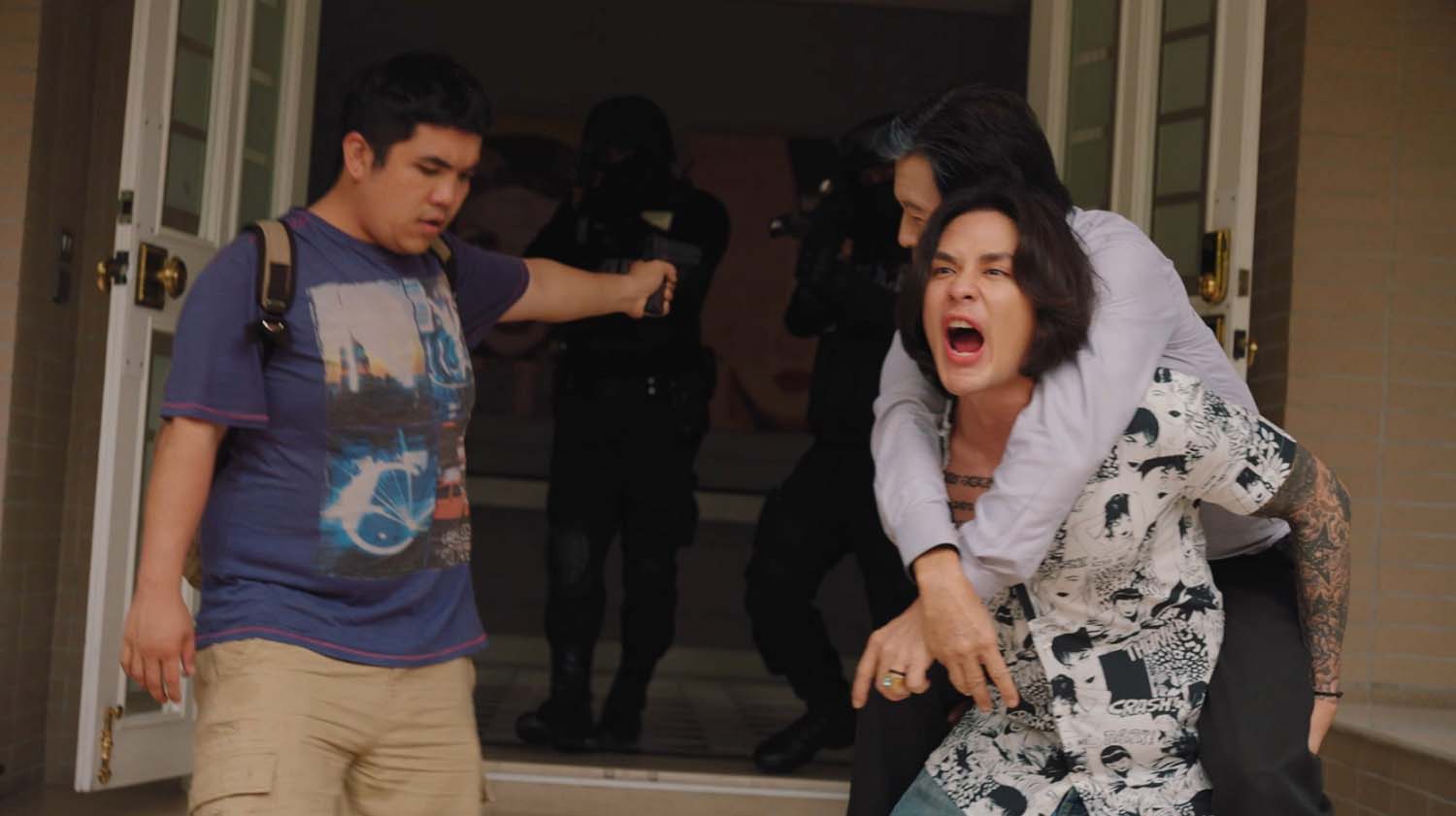 โดยฉากนี้ได้มีการยกกองไปถ่ายทำกันที่หมู่บ้านแห่งหนึ่ง ย่านรามอินทรา นำทีมโดย แทค-ภรัณยู ที่รับบท ปูน พาพรรคพวกอย่าง ดิน และ หิน หนีตำรวจและหน่วยคอมมานโด แถมยังต้องแบกศพของ เสี่ยวิชัย หนีขึ้นรถอีกด้วย งานนี้เมื่อผู้กำกับ โน๊ตจูเนียร์ ได้สั่งแอ็คชั่น! ความสนุกก็เริ่มเกิดขึ้น เมื่อเหล่านักแสดง แทค, แจ็ค, ท็อป ต่างเล่นนอกสคริปต์ที่เตรียมไว้ แถมยิงมุกสดเล่นส่งกันไปมา แถมฉากนี้ยังเสริมทัพด้วยดาราตลกรุ่นเก๋า อาทิ โป๊งเหน่ง เชิญยิ้ม, นก เชิญยิ้ม และ เขาทราย แกแล็คซี่ มาร่วมด้นมุกสดด้วยแล้ว ทำเอาทีมงานและผู้กำกับต่างเก็บความฮากันไว้ไม่อยู่เลยทีเดียว โดย แทค ได้เปิดเผยว่า
