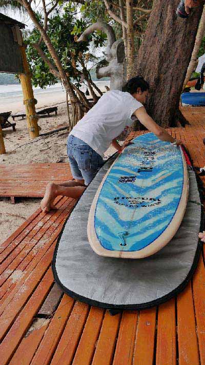 สำหรับ หนุ่มเป้ นั้นรักการเล่นกีฬาเอ็กซ์ตรีมหลากหลายประเภทมากๆ ไม่ว่าจะการชกมวย จักรยานผาดโผน ปีนเขา จนมาถึงกีฬาล่าสุดที่เขาชื่นชอบแบบหัวปักหัวปำ คือ “เซิร์ฟบอร์ด” นั่นเอง และสถานที่ที่ๆ เลือกไปเล่นในการเดินทางครั้งนี้ คือ ทะเลที่เล่นเซิร์ฟได้ดีที่สุดในประเทศไทย เพราะเป็นสถานที่ที่คลื่นจะเป็นเส้นตรงยาวขนานไปกับหาด ลมไม่แรงมาก ทำให้เล่นเซิร์ฟได้สนุก นั่นคือ อ่าวใหญ่ บนเกาะพยาม จ.ระนอง โดยเป้เล่าให้ฟังว่า “จริงๆ ผมเป็นคนรักสบายนะ เพื่อนๆ ชอบคิดว่าผมเป็นพวกชอบเจ็บตัว เพราะเห็นผมชอบเล่นพวกผาดโผน”