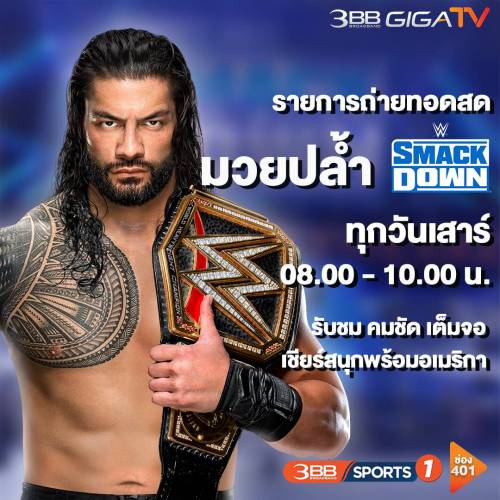 แฟนมวยปล้ำ เฮ!!!ชม “ศึกมวยปล้ำ WWE” (World Wrestling Entertainment) เมื่อกล่องทีวี “3BB GIGATV” ได้คว้าสิทธิ์ถ่ายทอดสด “ศึกมวยปล้ำ WWE” เพียงเจ้าเดียวในประเทศไทย เป็นเวลา 3 ปี ซึ่งรายการมวยปล้ำ WWE นี้มีผู้ชมในสหรัฐอเมริกามากกว่า 13 ล้านคนต่อสัปดาห์ และเป็นรายการมวยปล้ำที่ออกอากาศไปใน 160 ประเทศ โดยจะได้ชม 2 รายการสำคัญ คือ รายการ RAW (รอว์) เป็นรายการที่มีนักมวยปล้ำระดับซุปเปอร์สตาร์อัดแน่นเต็มรายการ โดยมีลีลาการต่อสู้ที่ดุเดือดเร้าใจ ออกอากาศให้ชมกันทุกวันอังคารเวลา 08.00 น. (เวลาประเทศไทย) และ รายการ SMACKDOWN (สแมคดาวน์) รายการนี้มีการต่อสู้ที่เข้มข้น และมีนักมวยปล้ำหน้าใหม่ให้ได้ลุ้นชวนติดตาม ออกอากาศทุกวันเสาร์ เวลา 08.00 น. (เวลาประเทศไทย)